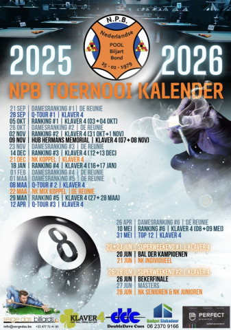 Beste NPB-leden, Afgelopen seizoen zat vol met leuke, sportieve en gezellige evenementen 🎱Een van deze evenementen was de Q-tour. In een reeks van zes voorrondes plaatsten de twee beste spelers (van elke voorronde) zich voor de finale op 22 juni 2025...
