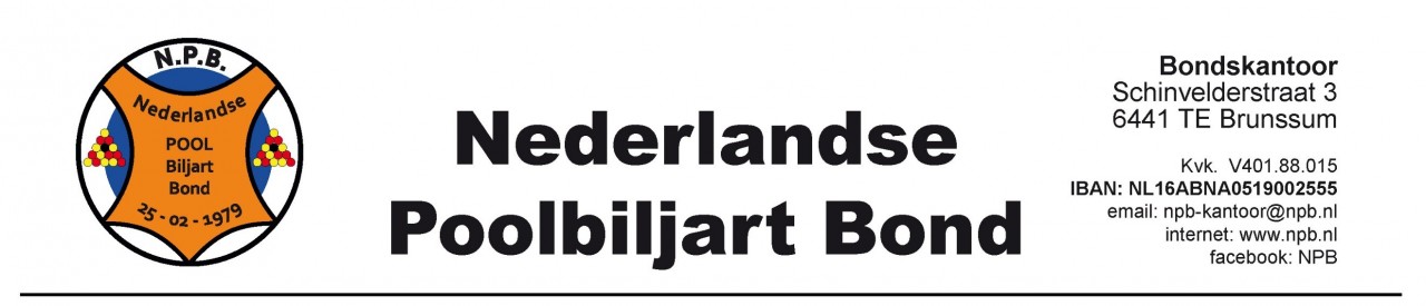 | De financiele verplichten dienen uiterlijk 27 augustus te zijn voldaan op: ABN AMRO: NL16ABNA0519002555 t.n.v. NPB te Brunssum Niet vooraf betaald = geen papieren afhalen |