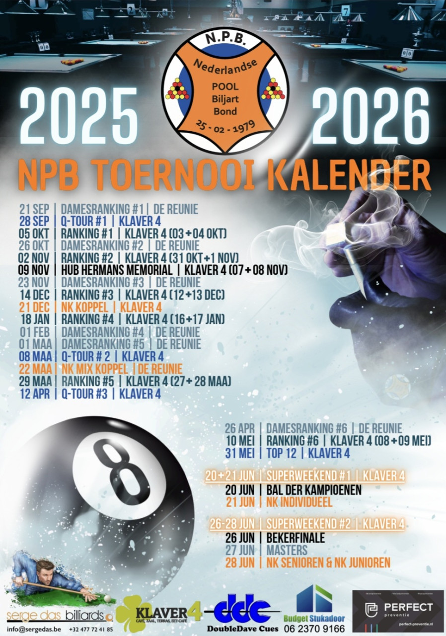 Met trots delen we graag de evenementenkalender voor het seizoen 2025/2026! 🎱🤩